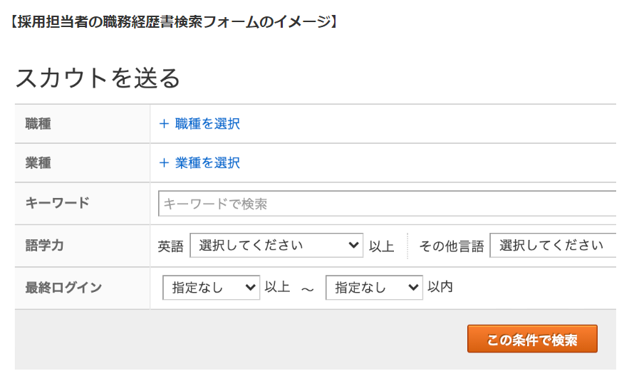 多くの企業・ヘッドハンターは、検索条件を指定して該当する職務経歴書を閲覧します。