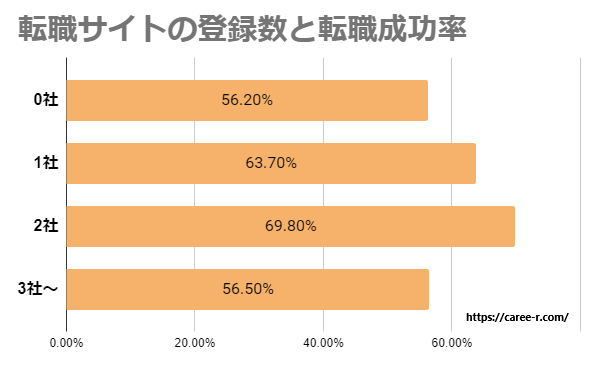 CAREEの調査によると、看護職特化の転職サイトを利用した看護師の中で、2社掛け持ちした人の転職成功率は69.8%。※3