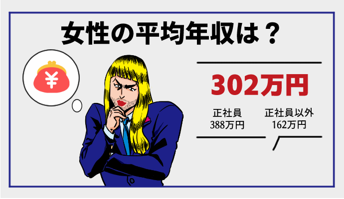 働く女性の平均年収は302万円と、年収600万円には程遠い結果となっています。