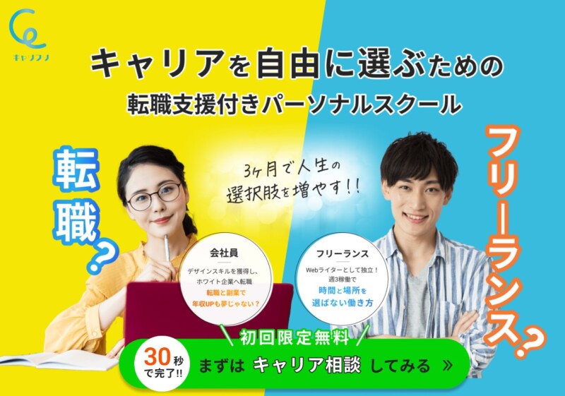 キャリフリは、転職orフリーランスで悩んでいる人やスキルがなくて悩んでいる人のキャリアチェンジを支援するサービスです。