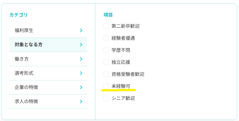 ただし、未経験者可求人は業界経験者優遇の求人と比較すると数は少ないです。