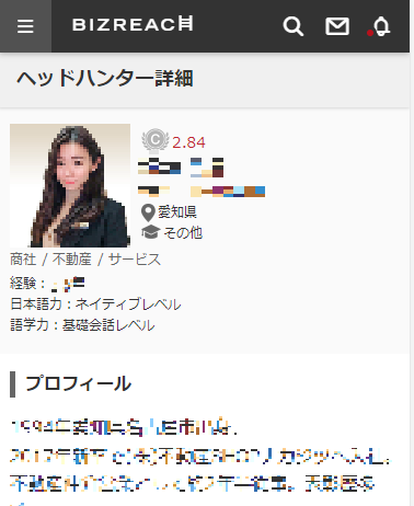 ビズリーチは、スカウト型の転職サイトで、企業やヘッドハンター、エージェントからコンタクトが来ます。